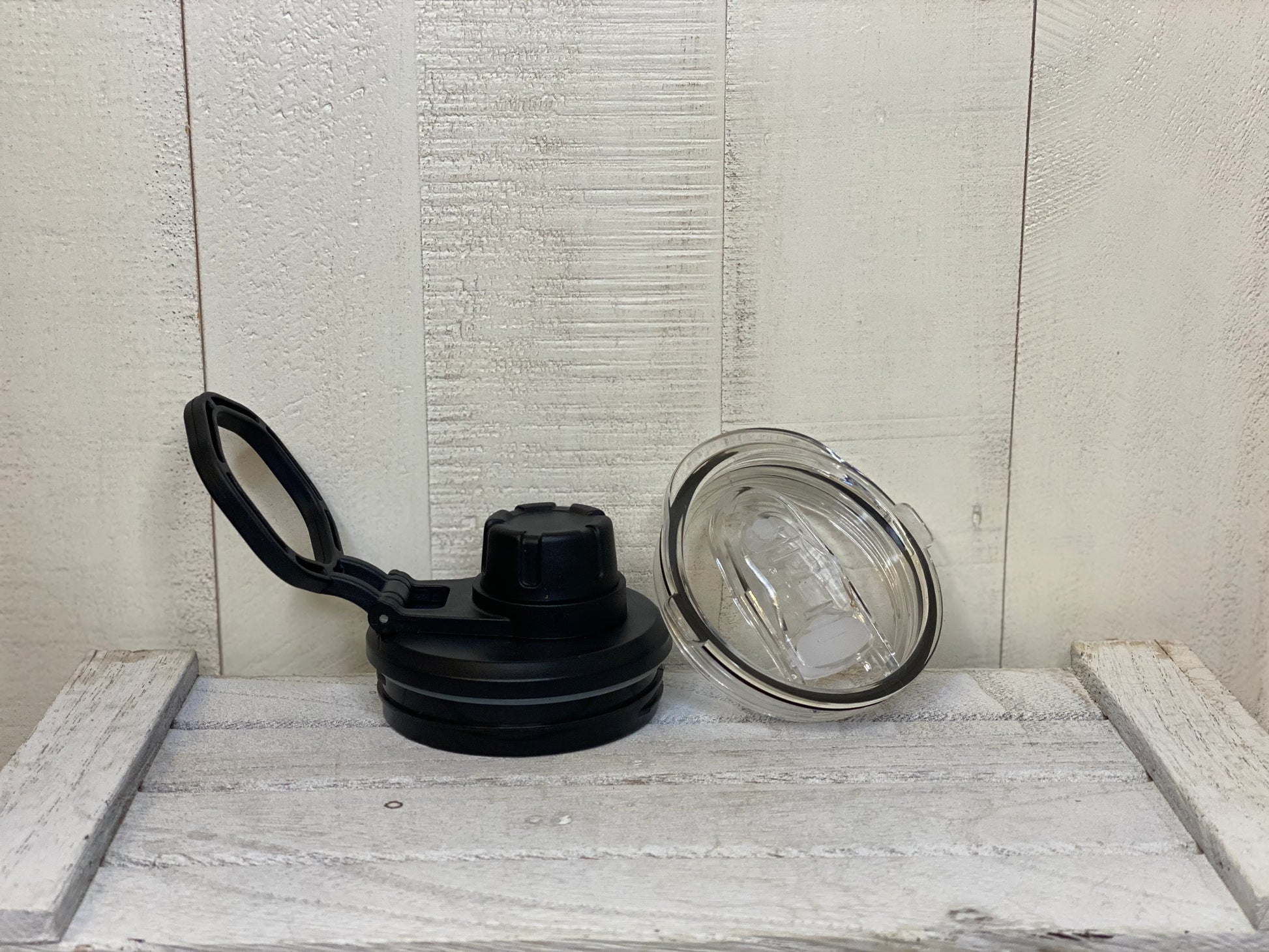 Water bottles will come with a black water bottle screw on top, clear screw on lid and straw